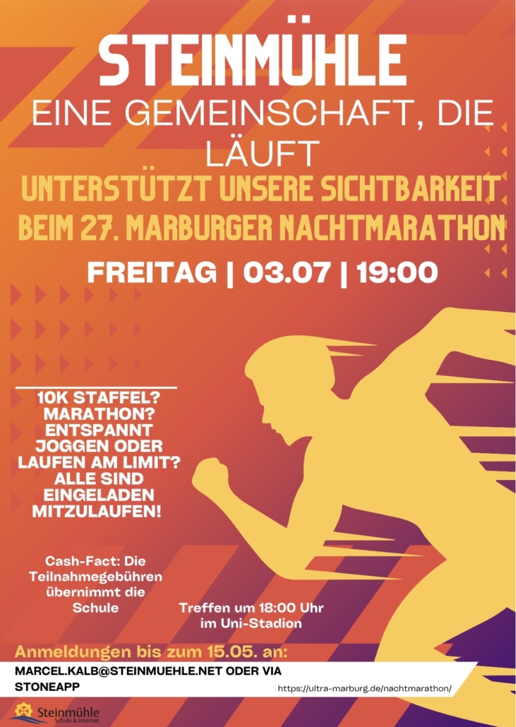 Das Datum gehört traditionell in den Kalender aller Läuferinnen und Läufer, die beim Marburger Nachtmarathon das Team der Steinmühle verstärken möchten: Freitag, der 3. Juli, 19 Uhr.