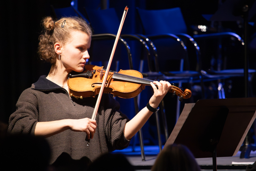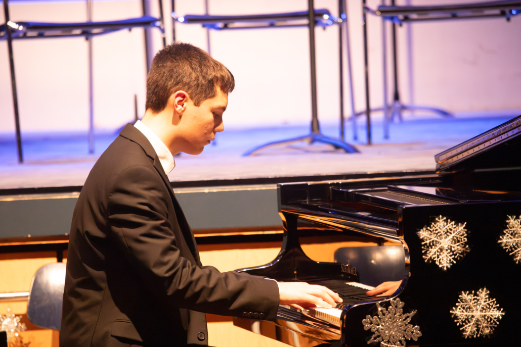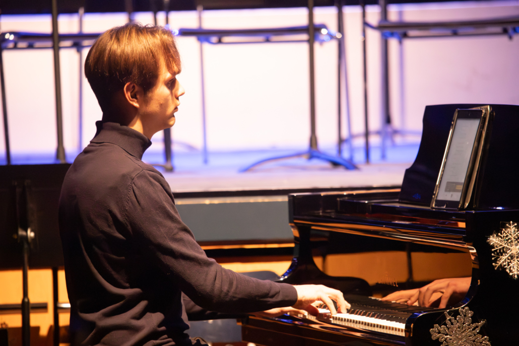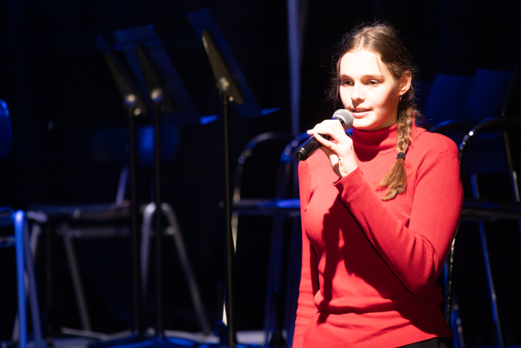 Anschließend hat der 5er Chor unter Leitung von Daniel Sans weitere Lieder zum Besten gegeben. Besonders „Feliz Navidad“ hat die anwesenden Eltern zum Mitsingen und Mitklatschen bewogen, während Felix Tondorf den Chor am Klavier begleitet hat. Einem weiteren rührenden Klavierstück konnten die Anwesenden dann bei Greta Bambergers Vorstellung lauschen.