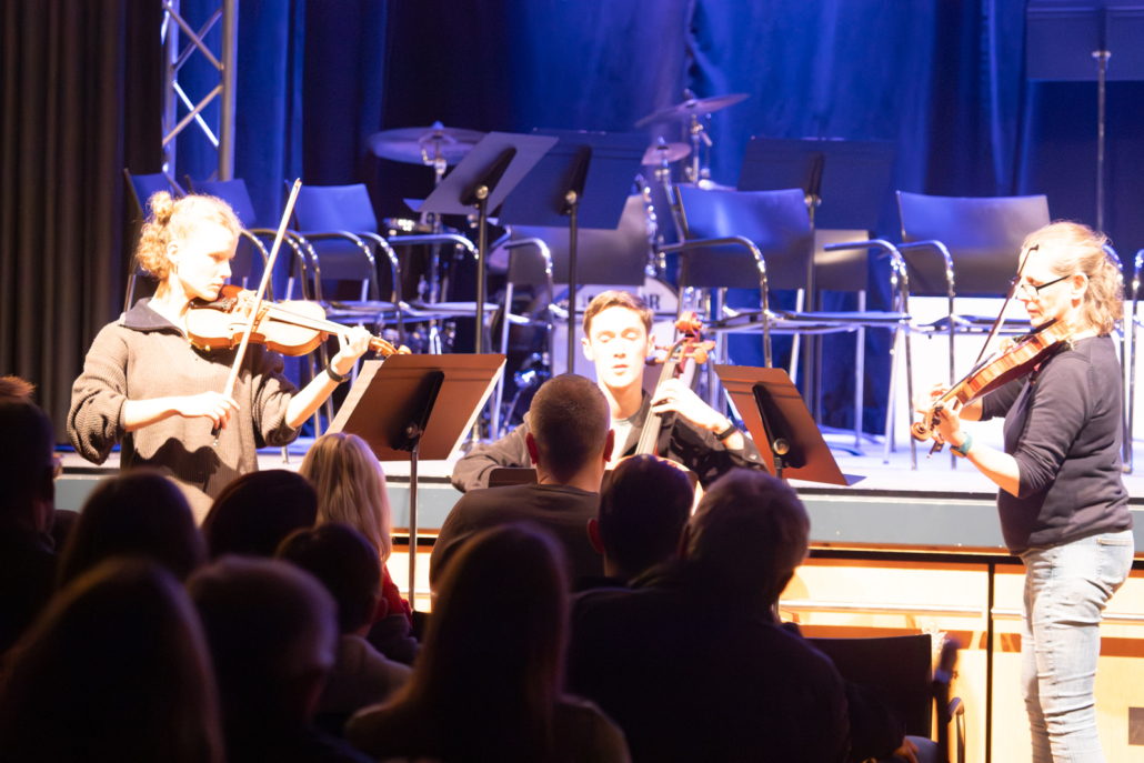 Am Nachmittag des 8. Dezember kam der Jahrgang 5 der Steinmühle mit den Eltern im Forum zusammen, um gemeinsam gemütlich die Vorweihnachtszeit zu zelebrieren. Dazu hatte die Bläserklasse unter Andreas Jamin drei Lieder eingeübt und gespielt – alle waren begeistert, was die Gruppe nach nur sieben Mal üben schon konnte!