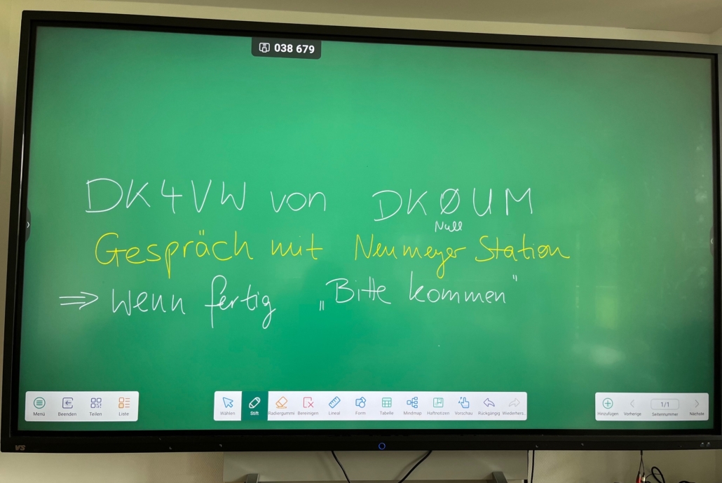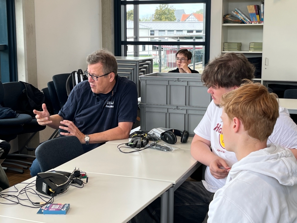 Unter fachkundiger Anleitung galt es, sich mit dem Funkalphabet vertraut zu machen, den Rufnamen der Gegenstation aufzusagen und dann den eigenen Rufnamen zu nennen. Jeden Satz war mit „kommen“ zu beenden, was der Gegenseite signalisiert, dass man fertig ist. Bei „over and out“ endet das Gespräch komplett.