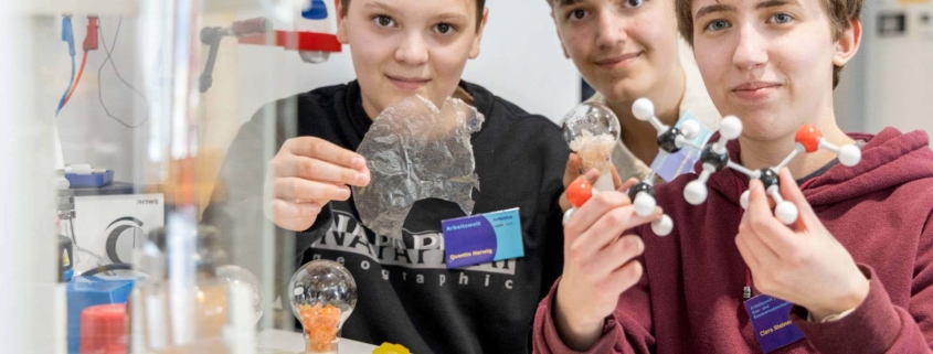 Luis (16), Clara und Fabian (beide 17) waren durchaus aufgeregt, als sie sich unter rund 50 anderen Projekten und letztlich gegen drei weiteren ihrer Kategorie behaupten mussten. Rund eine halbe Stunde stellten die Jury-Mitglieder aus Forschung, Lehre und Unternehmen ihre Fragen – und die lagen auf Augenhöhe. Unter dem Label „Wasseranalyse 2.0: Autonomes Low-Cost-Boot zur Gewässergüte-Bestimmung“ präsentierte das Trio sein Forschungsprojekt. Hier wurde tief in die Materie eingetaucht – nicht die Spur von Gefälligkeitsfragen, deren Antworten etwa auf der Hand gelegen hätten. Erleichtert und fast ungläubig vernahmen die Schülerinnen und Schüler, die am plus-MINT-Programm des Internats der Steinmühle teilnehmen, dass sie den Sieg errungen hatten – der Lohn für engagierte Stunden des Tüftelns, viel Fachwissen, unendliche Ausdauer und enormes Interesse.