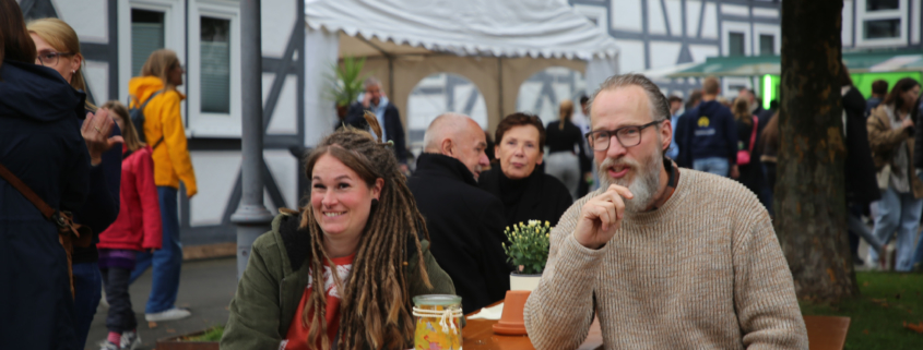 Die Steinmühle nutzt das Herbstfest auch zur Übermittlung von Informationen über Schule und Internat. Mitglieder der Schulleitung halten sich bereit, um Besuchenden, die Fragen haben, Rede und Antwort zu stehen. Gleichzeitig steht der Förderverein rund um die Vorsitzende Jasmine Weidenbach all denjenigen zur Verfügung, die über eine Mitgliedschaft nachdenken. Was finanziert der Förderverein, wo springt er finanziell ein? – Beim Herbstfest gab es die Live-Antworten.