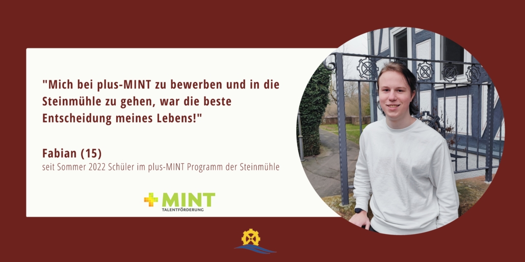 Die plus-MINT Förderung in der Steinmühle richtet sich an junge Menschen ab der 10. Klasse bis zum Abitur. Dieser besondere Bildungsweg wird gemeinsam mit starken Partnern gestaltet. Dazu zählen etwa Forschungseinrichtungen und Unternehmen aus dem Maschinenbau, der Informatik oder Bereichen der Naturwissenschaften. Ergänzend dazu kann sogar ein eigenes Forschungsprojekt an einer Universität durchgeführt werden.