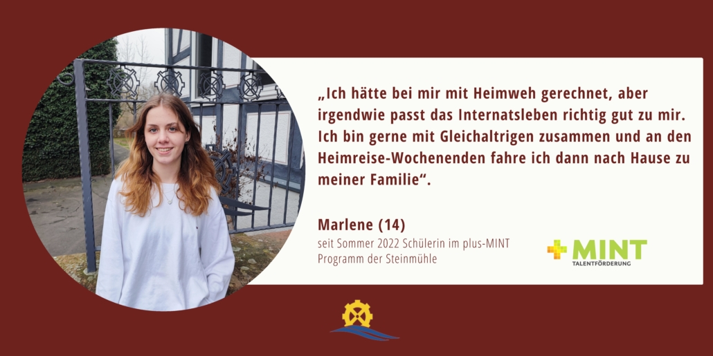Besonders talentierte Schülerinnen und Schüler mit Begabung und Leidenschaft für Mathematik, Informatik, Naturwissenschaften oder Technik (MINT) werden an eigens dafür ausgewählten plus-MINT Internaten in besonderer Weise gefördert. Eines dieser besonderen Internate ist die Steinmühle.